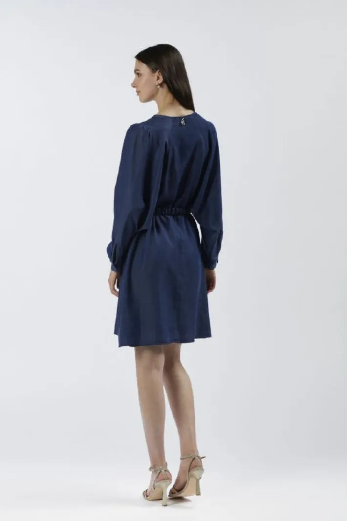 Abito tipo tunica con scollo a “v” e maniche lunghe. realizzato in tencel jeans.