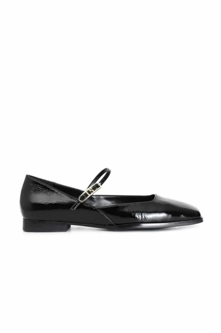 Ballerina in naplak con laccino e fibbia personalizzata. fodera e soletto sono in pelle. tacco alto 15 mm.
