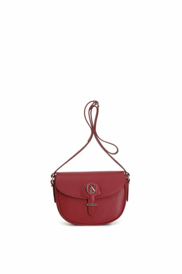 Borsain pelle con pattina e logo cafènoir. chiusura con calamita e tracolla regolabile.