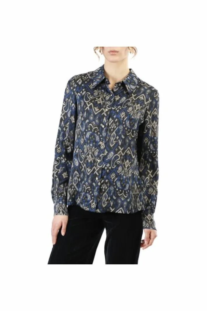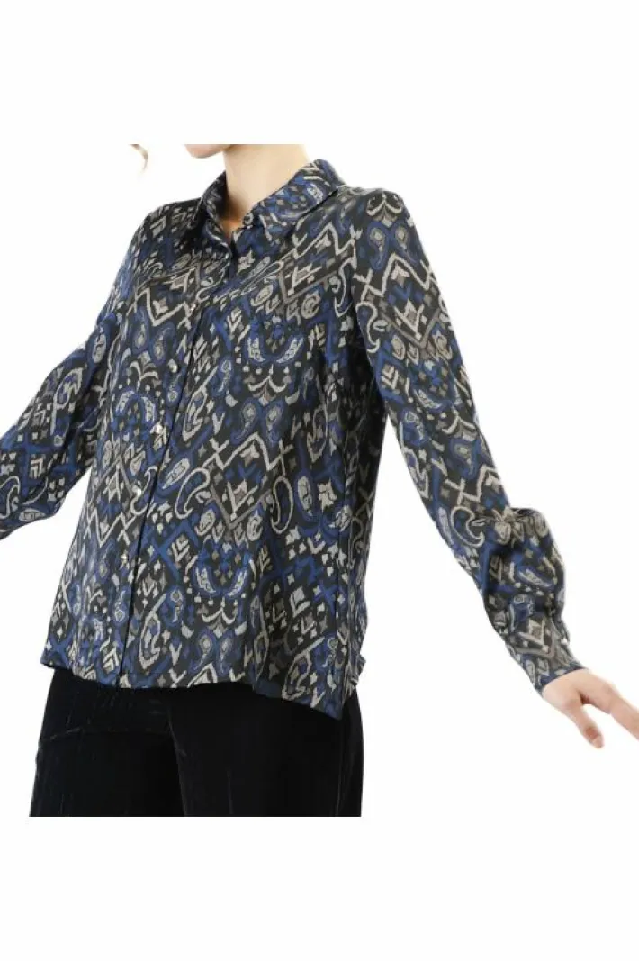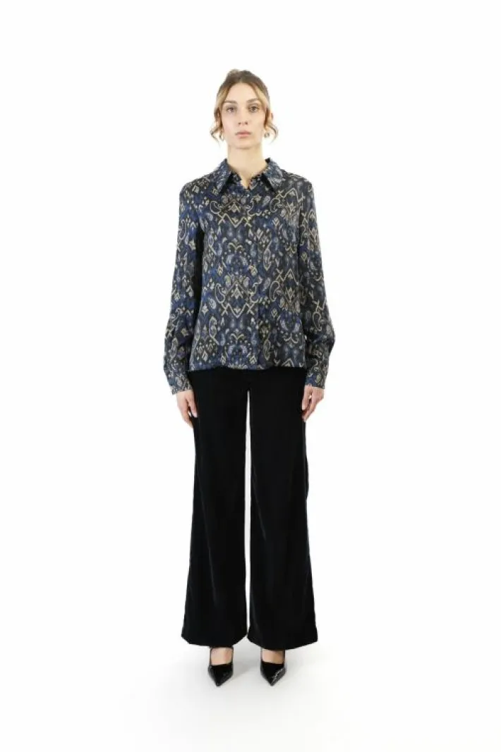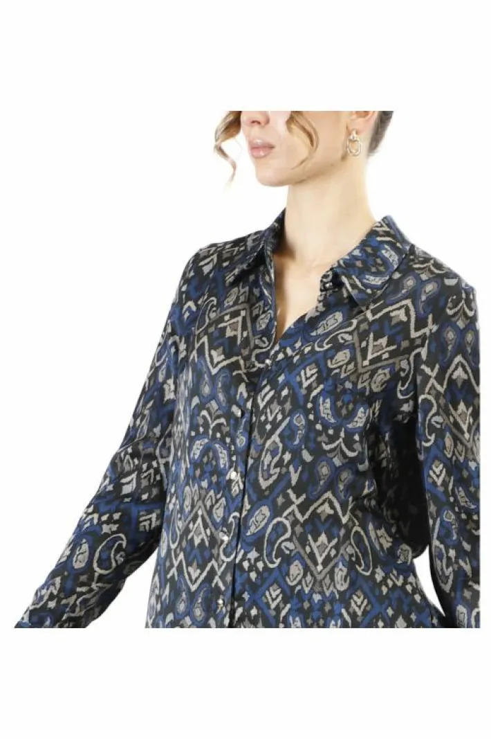 Camicia a maniche lunche dalla linea svasata in viscosa stampata. chiusura con bottoni. must-have del guardaroba da indossare il giorno con la gonna in coordinato o jeans.