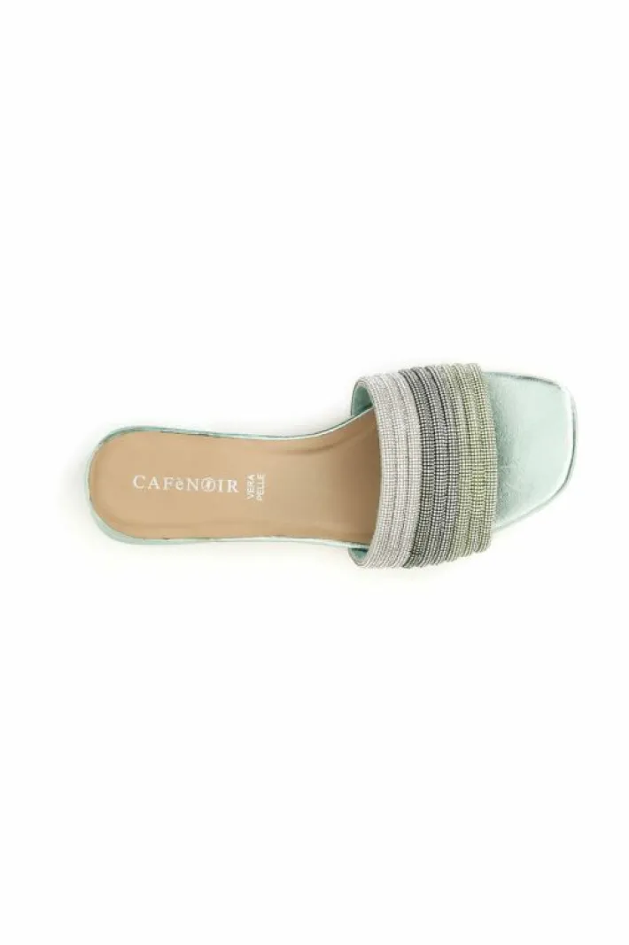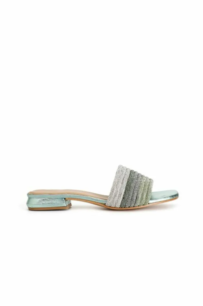 Ciabatta effetto laminato con strass colorati.