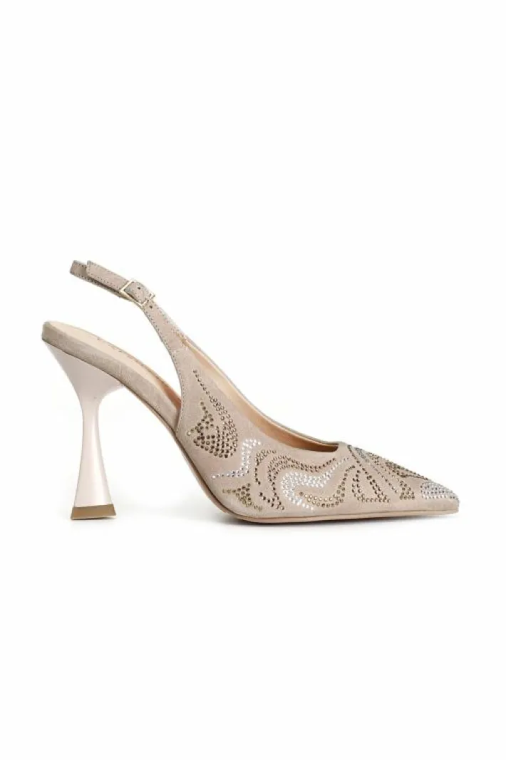 Elegante décolleté in nappa con fantasia di microborchie e laccio alla caviglia. comodo soletto imbottito in pelle. ta…