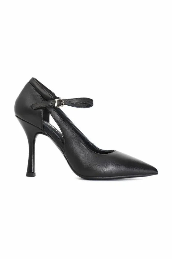 Dècollète in pelle con cinturino alla caviglia e tacco h. 90mm