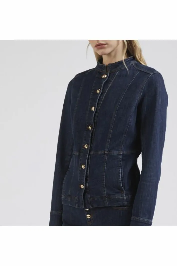 Giacca avvitata con colletto tipo biker realizzata in tela denim comfort.