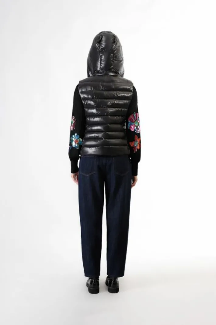 Gilet corto dalla forma essenziale realizzato in nylon ultralight dalla finitura lucida. il capo presenta un cappuccio…
