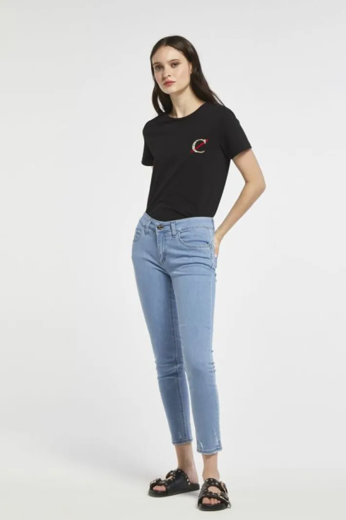 Jeans brigitte modello skinny in tela superstretch con abrasione alle tasche e al fondo