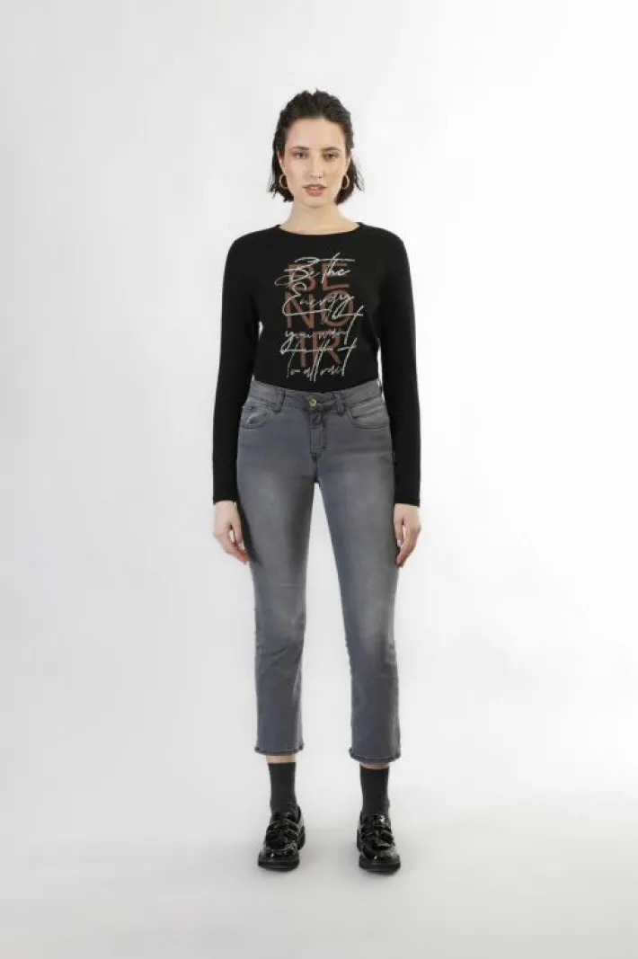 Jeans denim in tela super stretch dalla vestibilità cropped flare. passanti in vita cinque tasche chiusura con bottone …