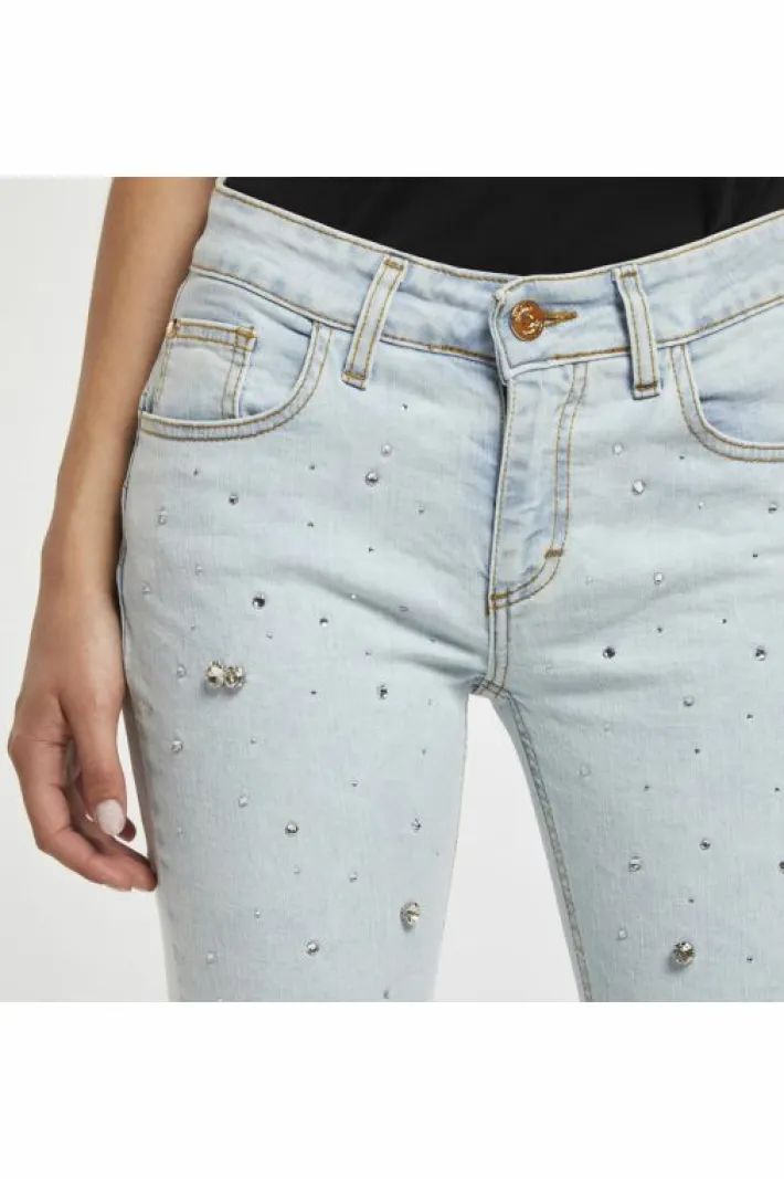 Jenas brigittte modello skinny in tela stretch elegante applicazione di strass alle gambe.