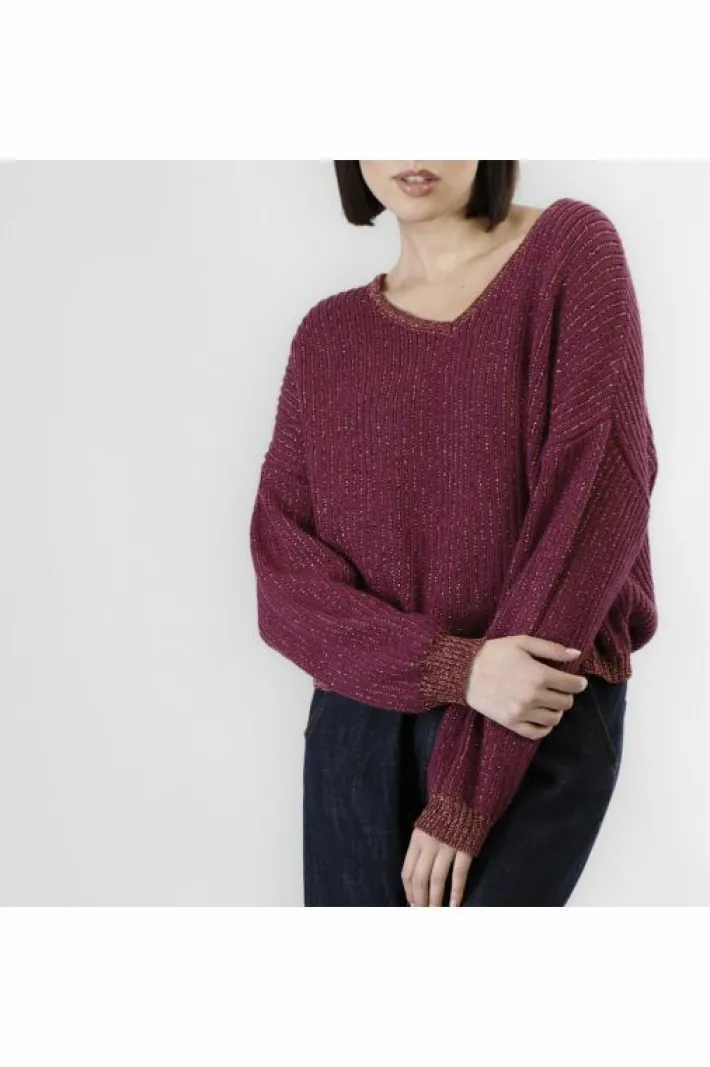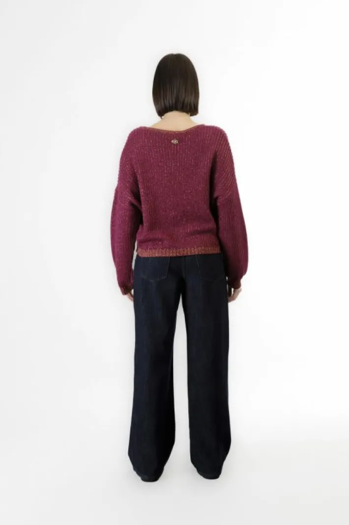 Maglia in misto lana e lurex con scollo “v”. capo che protegge dal freddo con stile e charme durante la stagione più fredda.