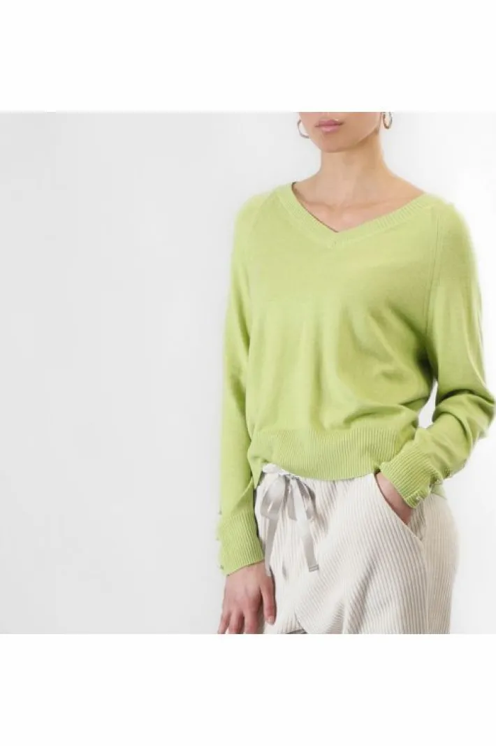 Maglia con collo a “v” realizzata in filato misto cashmere. perfetta per essere indossato con qualunque abbinamento.