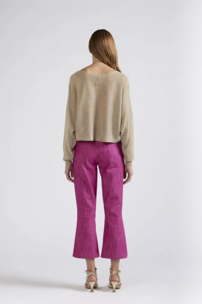 Maglia scollo a barca e maniche lunghe pipistrello in filato misto viscosa con lurex