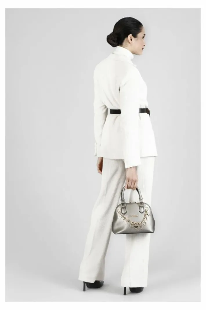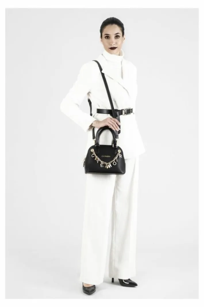 Mini bag da portare a mano oppure a tracolla, impreziosita da una catena con lettere pendenti Cafènoir ricoperte di str…
