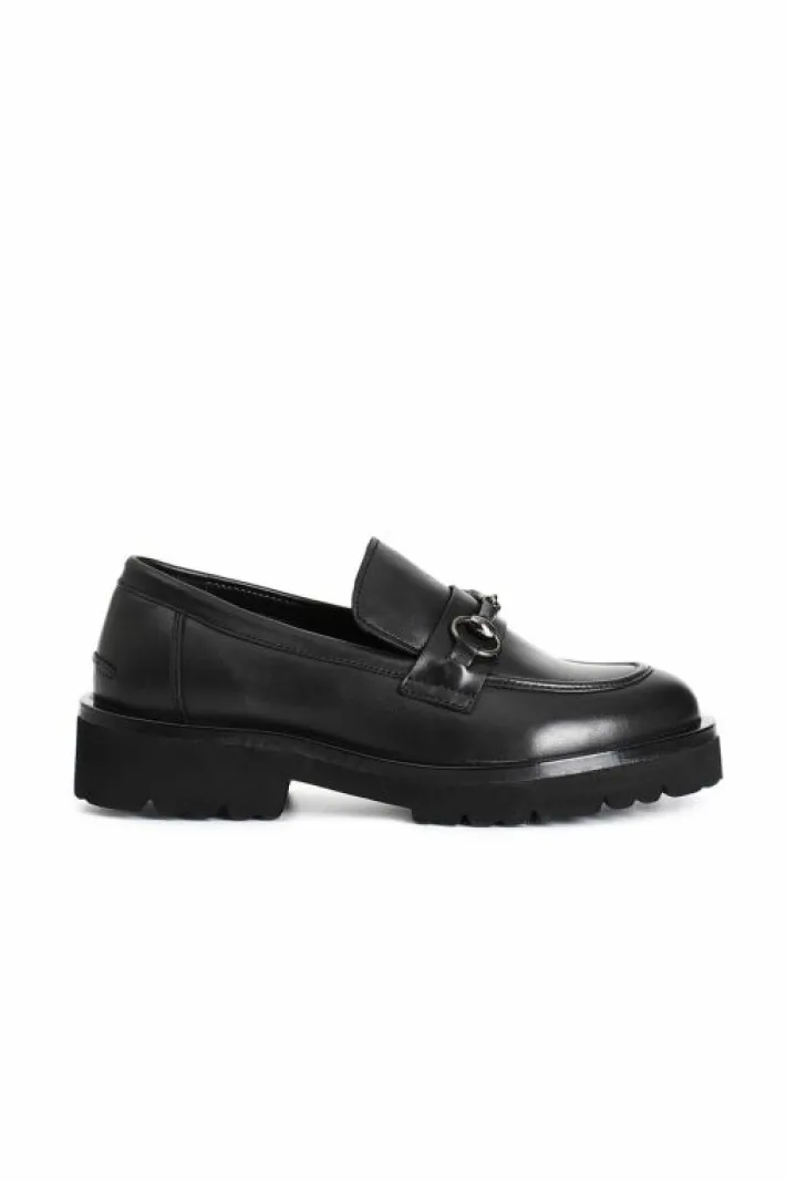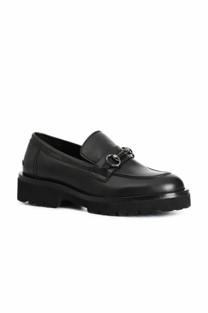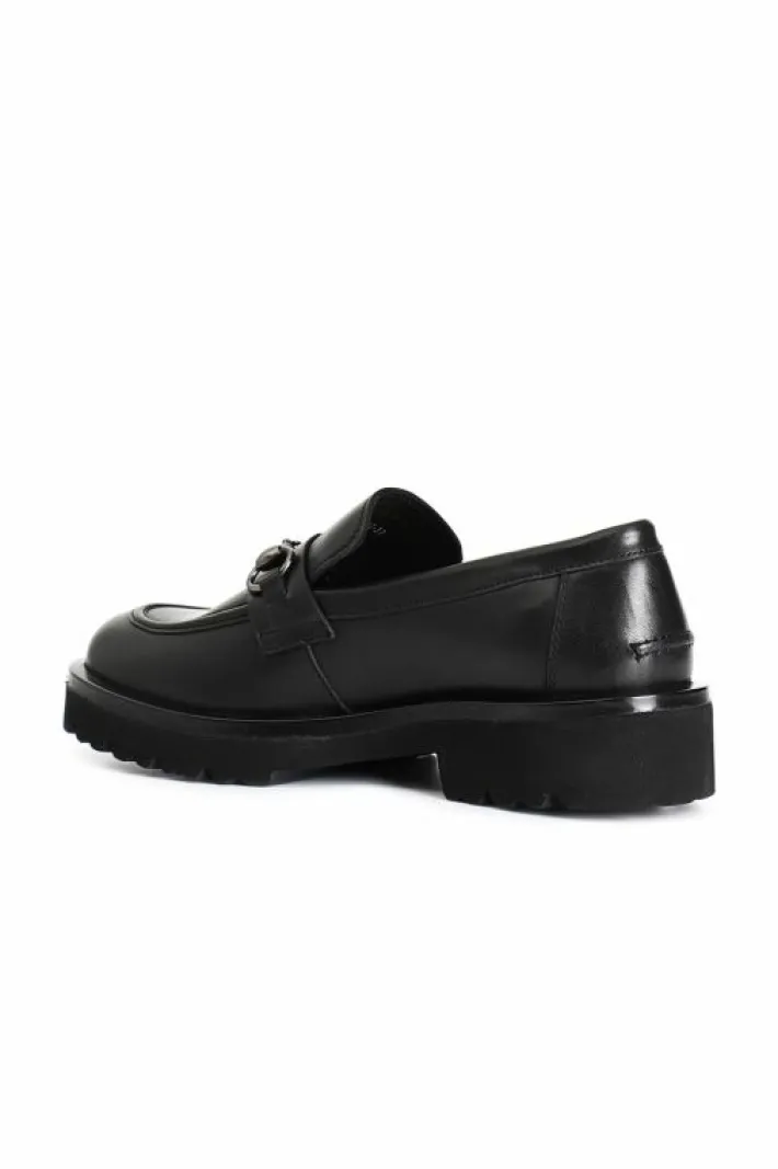 Mocassino da donna in pelle con morsetto ornamentale. il tacco è alto 35 mm. la fodera e soletto sono in pelle.