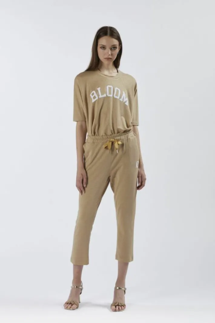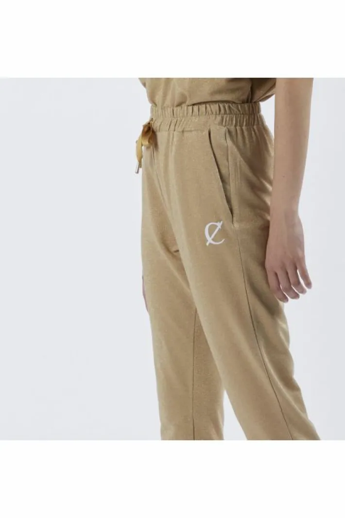 Pantaloni tipo jogger con vita elastica in un tessuto tipo felpa misto viscosa con lurex. capo estremamente comodo funzionale e di tendenza.