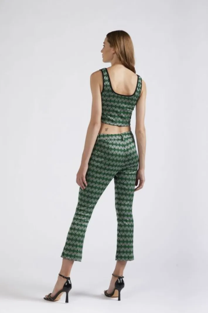 Pantaloni modello trombetta realizzati in tessuto jacquard.