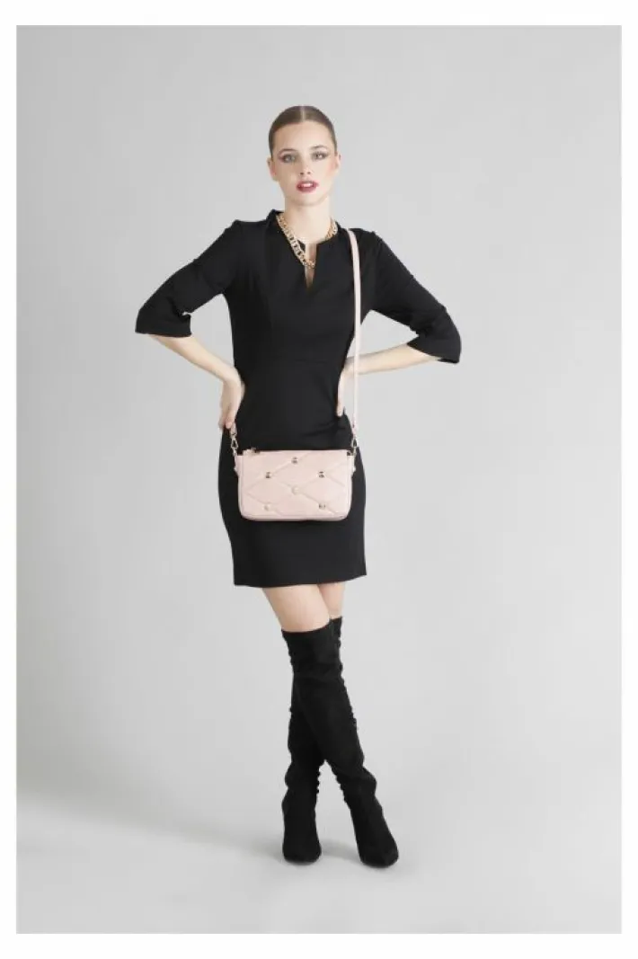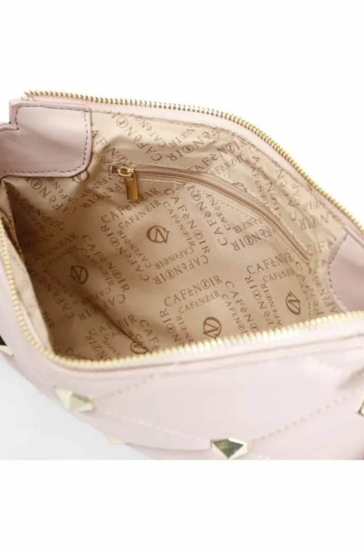 Pochette trapuntata con borchie esagonali e logo ambossed. borsa provvista di unico scomparto di un taschino interno con zip e di tracolla. chiusura con cerniera.