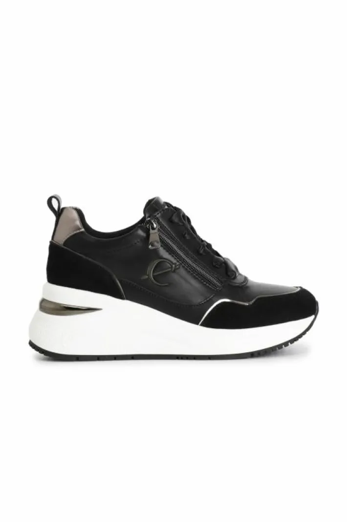 Running da donna in pelle rivestita con riporti in camoscio e cerniera ornamentale laterale. fussbett interno.