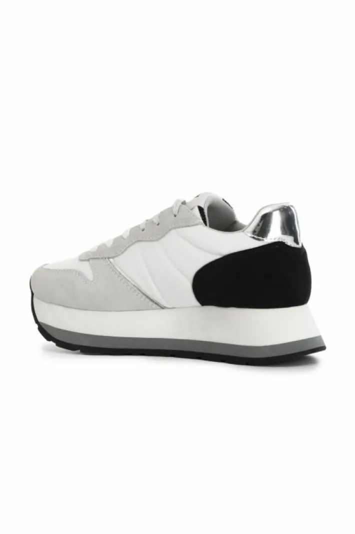 Sneakers da donna allacciate in pelle scamosciata e tessuto. logo argentato laterale con monogramma cafènoir. altezza suola 30 mm. fussbett interno.