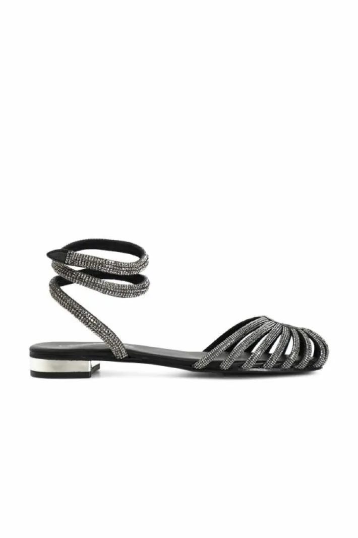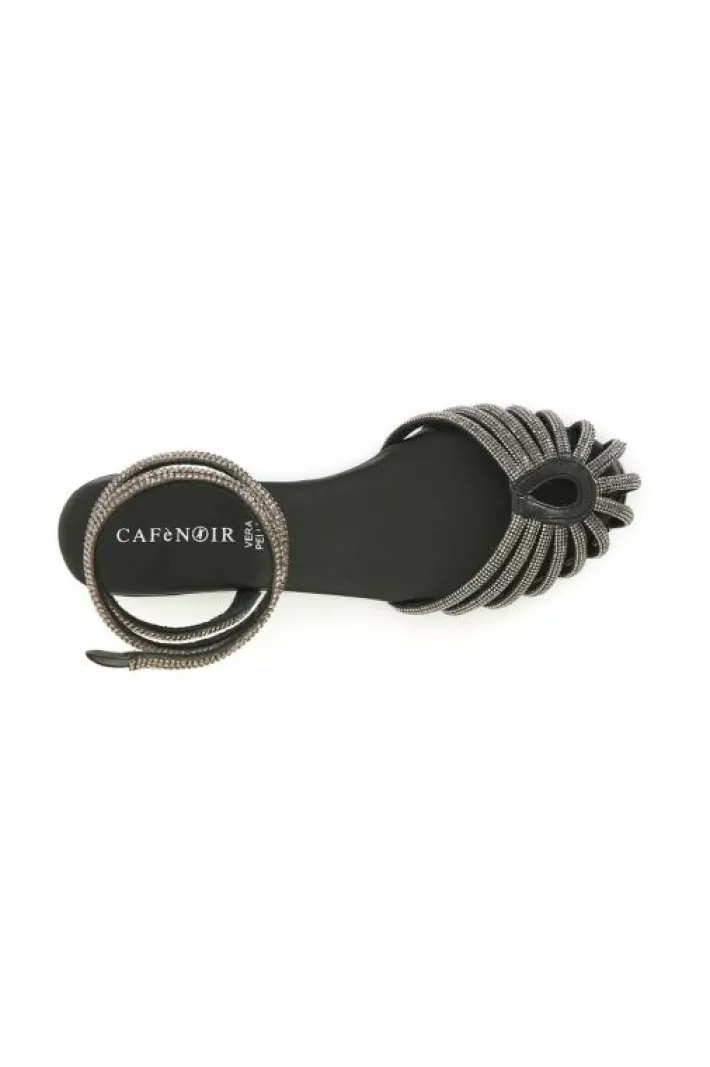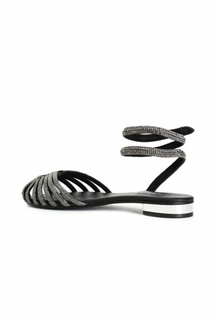 Sandali gabbia in pelle con toppone sul retro e mignon strass. cavigliera a spirale.