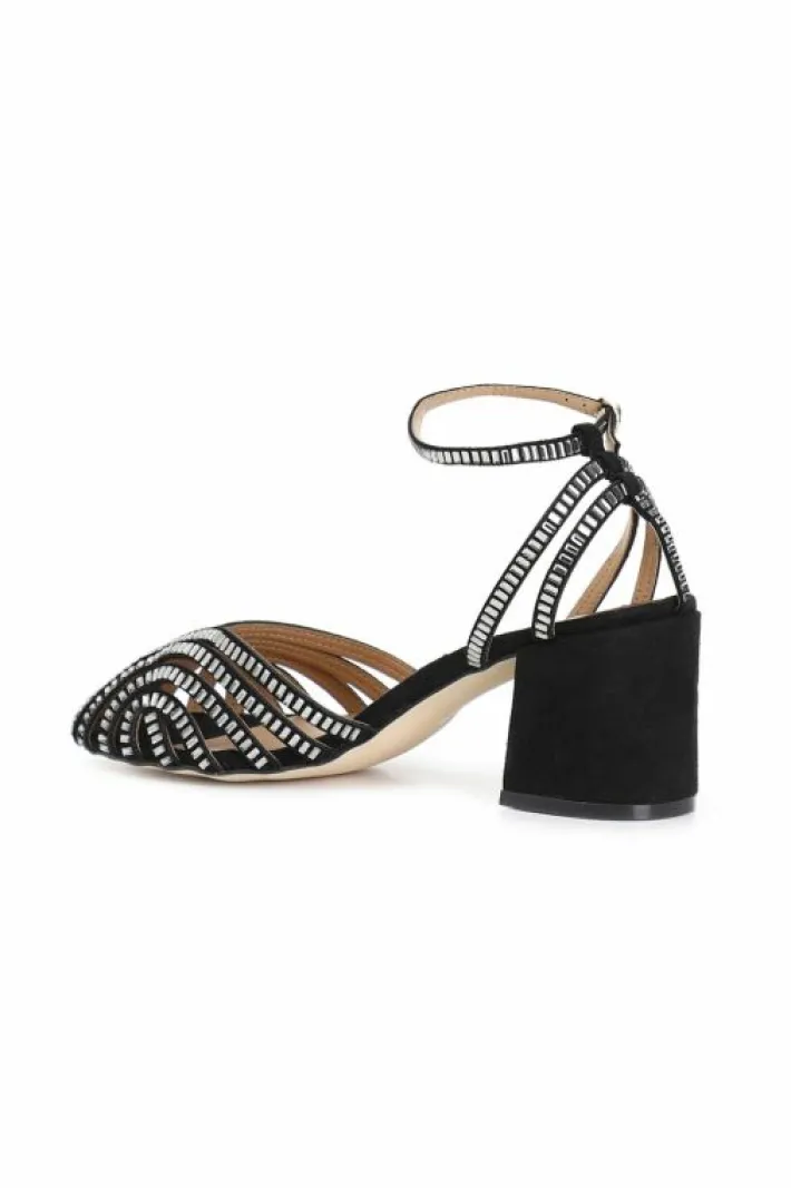 Sandali a gabbia laccio alla caviglia in microfibra e strass tacco h.60mm