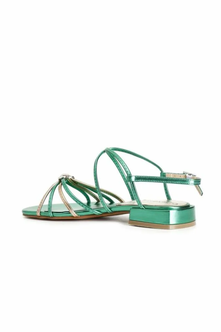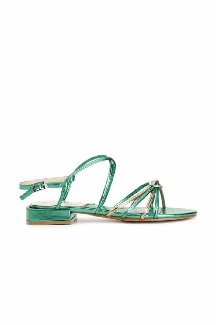 Sandali con multilistini con effetto laminato caratterizzato da un doppio incrocio. accessorio frontale a forma di cuore…