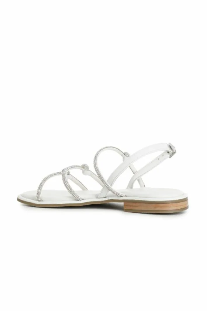 Sandali con tre fasce con nodo ricoperte di microstrass. cinturino con fibbia regolabile.