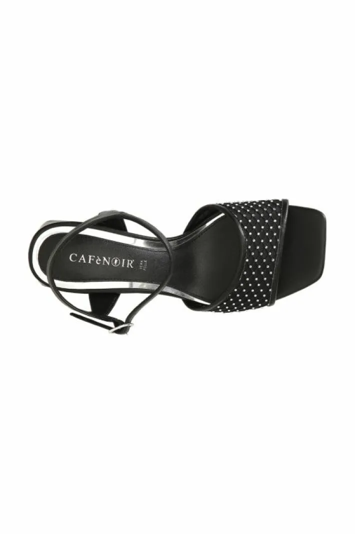 Sandali modello gilda con retina caratterizzata da strass. il soletto imbottito in vera pelle fa risultare la calzatura comoda anche dopo svariate ore di utilizzo. il tacco è di 50mm.