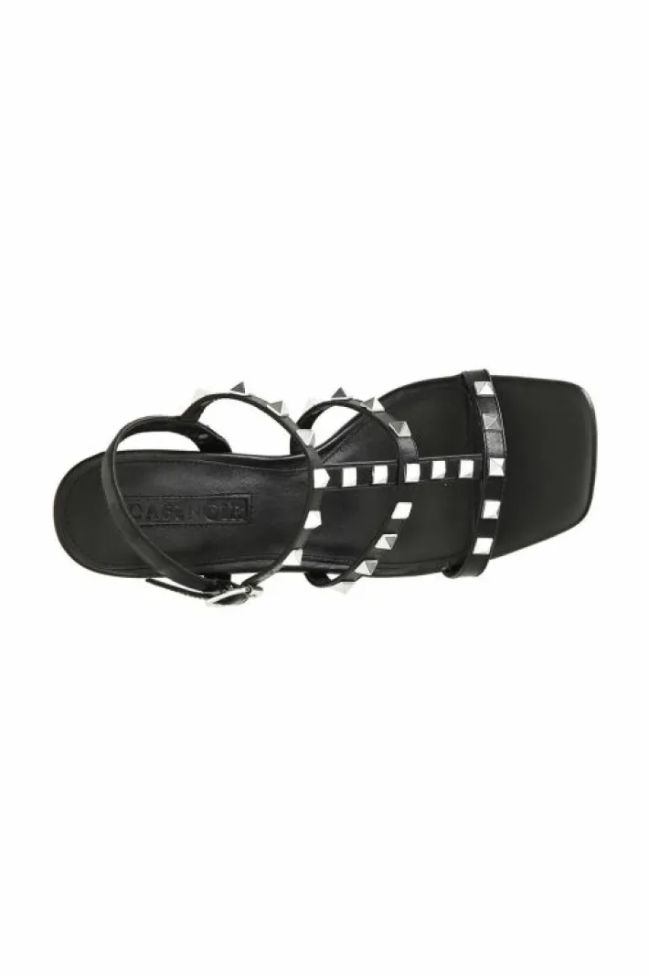 Sandali in pelle con borchie argentate. cinturino regolabile. soletto in pelle. tacco alto 75 mm.