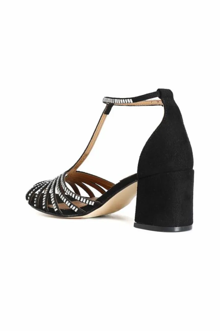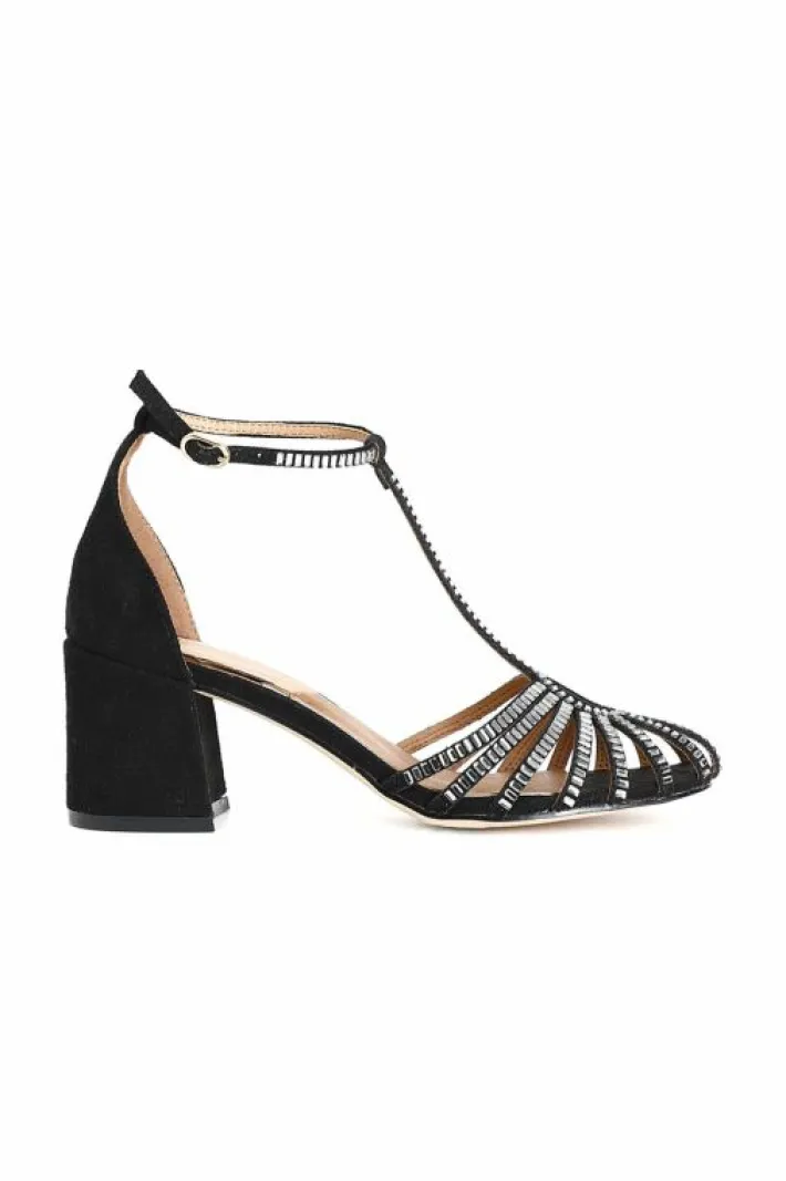 Sandali gabbia a t in microfibra e strass cinturino alla caviglia e tacco h. 60mm