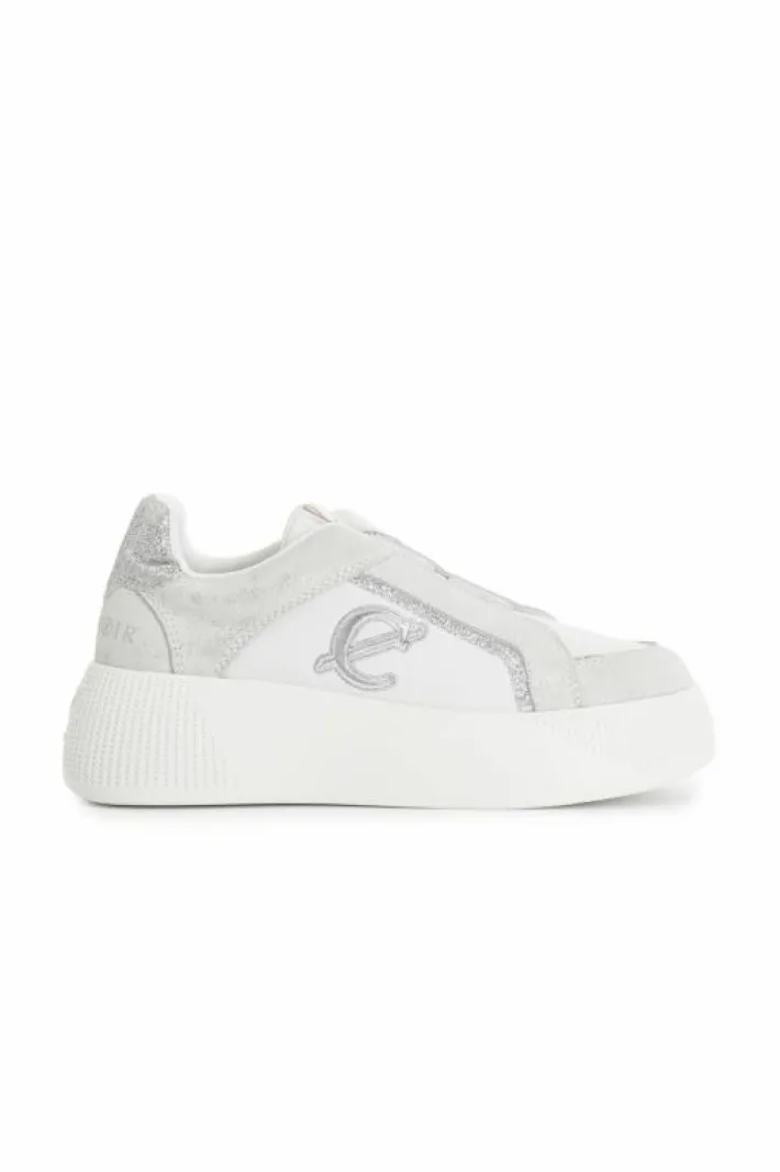 Sneakers modello slip-on in pelle scamosciata laminata. logo embossed ricamato laterale con monogramma cafènoir. suola alta 55mm