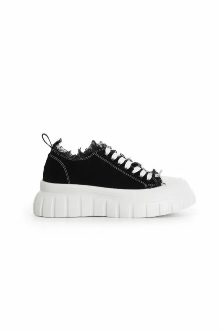 Sneakers allacciate in tessuto sfrangiato e cuciture a contrasto. punta in gomma. chiusura con lacci in tono alla cucitura a contrasto. suola rialzata 55mm decorata da un pattern rigato.