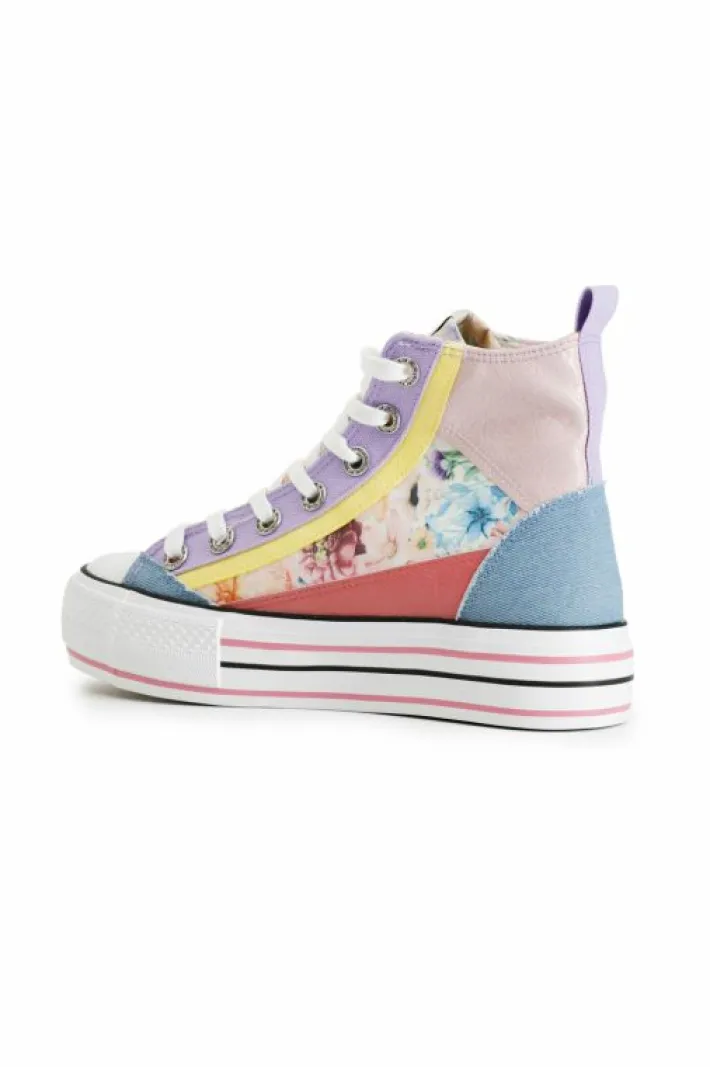 Sneakers mid con inserti multi color e fantasia. chiusura con lacci. suola a cassetta da 40mm con dettagli colorati.