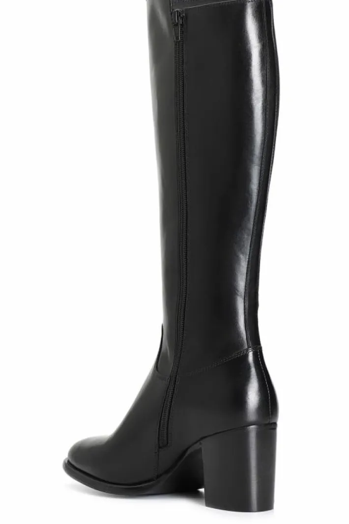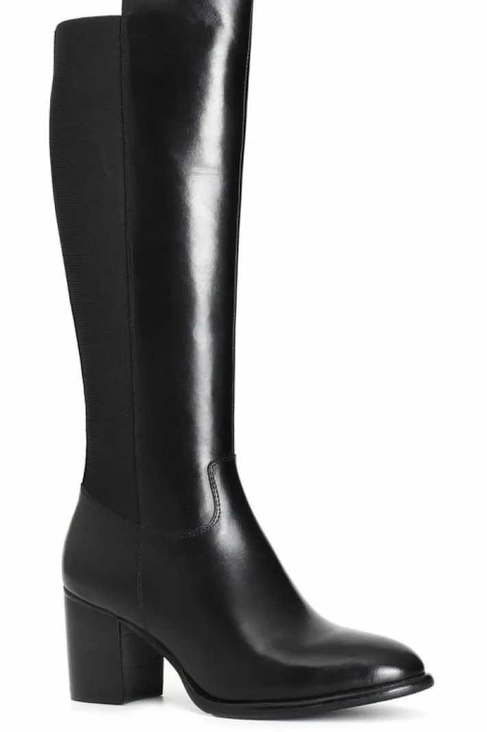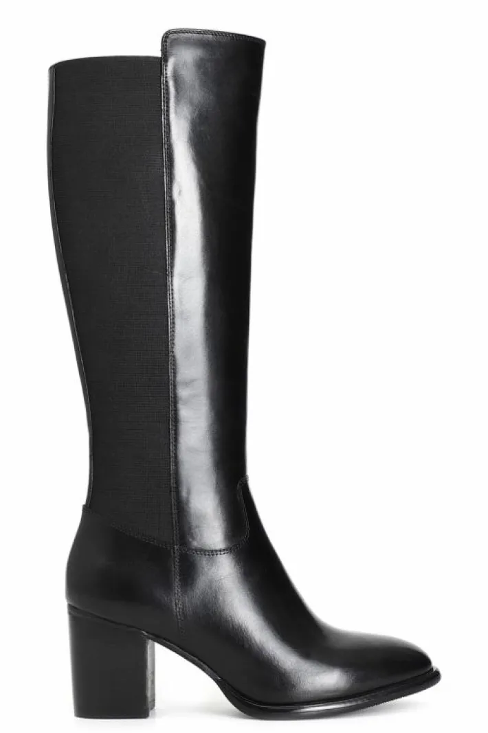 Stivale da donna in pelle con elastico. tacco spesso alto 60 mm. il soletto è in pelle.