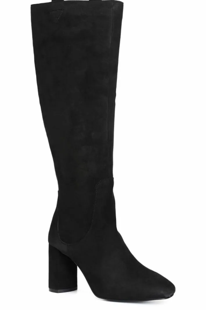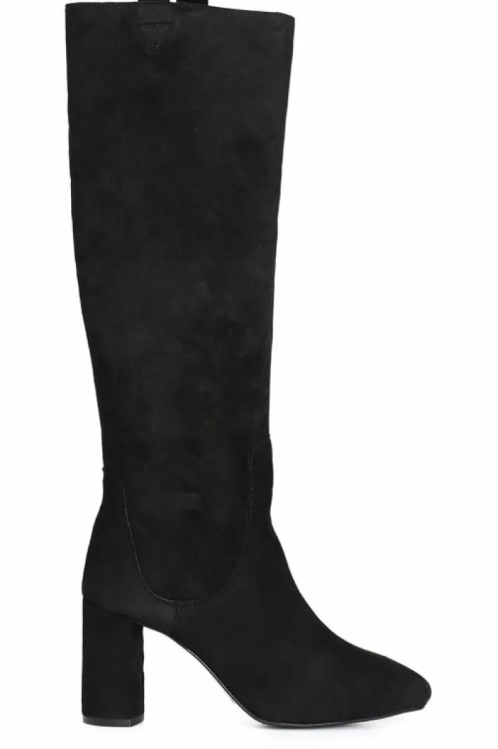 Stivale in camoscio. modello iconico dalla forma leggermente arrotondata per uno stile innovativo e raffinato. tacco alto 80 mm. il soletto è pelle.