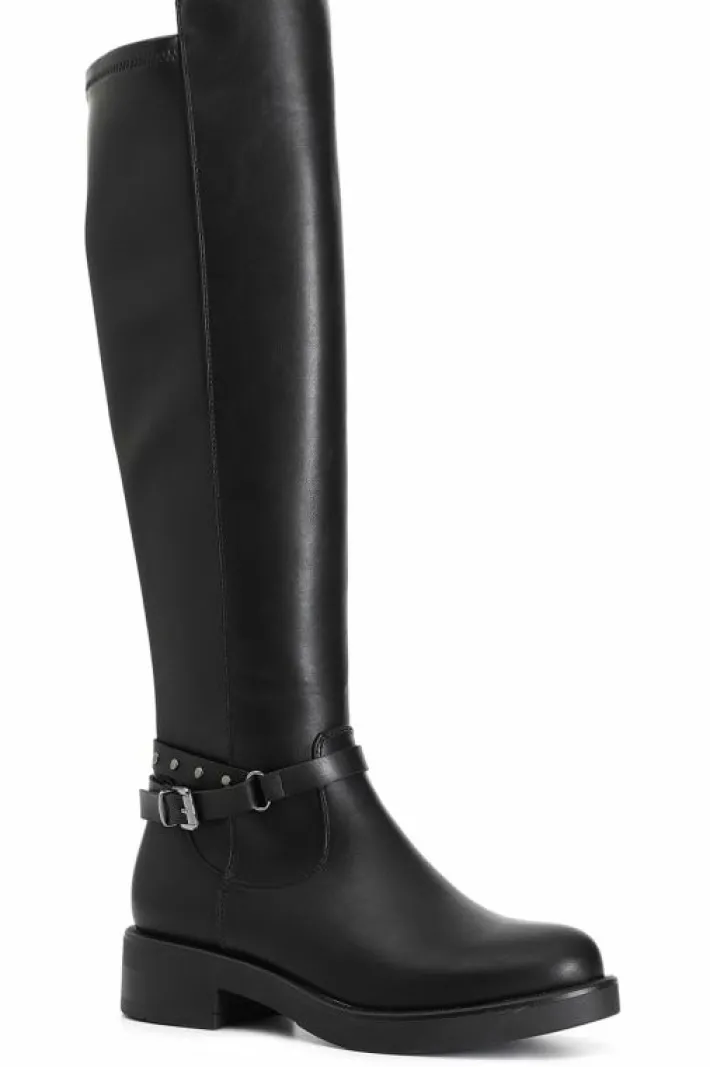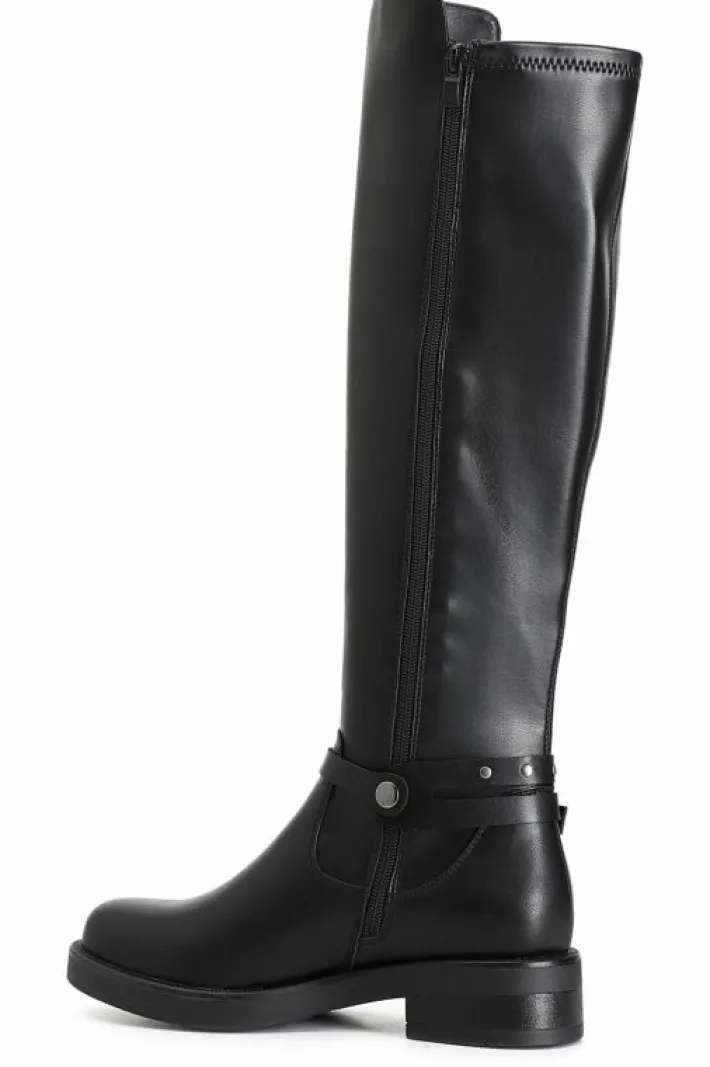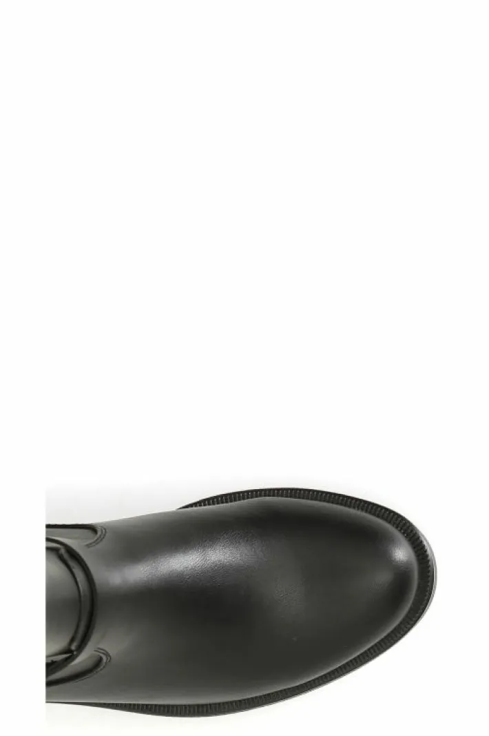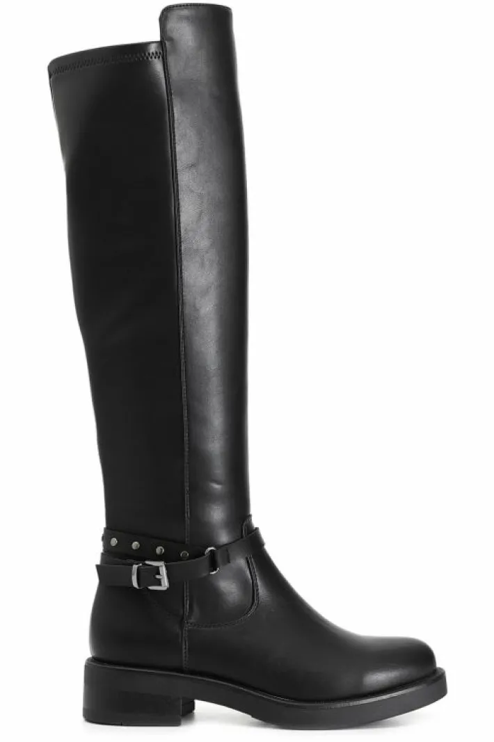 Stivale elasticizzato da donna caratterizzato da una cavigliera removibile cvaratterizzata da cinturini con borchie e fibbia ornamentale. il soletto è in pelle.