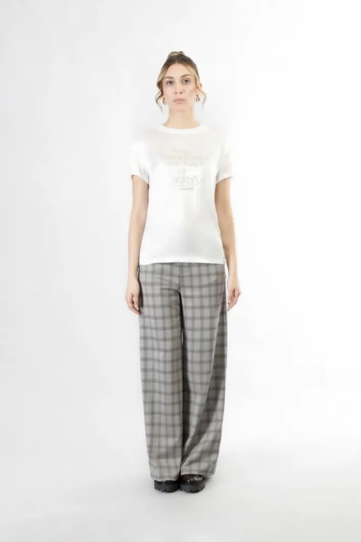 T-shirt bimateriale dalla vestibilità regolare e con maniche corte. il davanti della t-shirt riproduce la scritta “never underestimate the power of women” con stampa effetto glitter ed è realizzata in satin di viscosa con . il dietro è in jersey di viscosa.