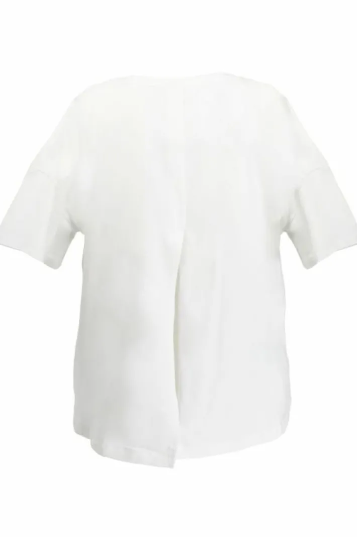 T-shirt a maniche corte in jersey di cotone elasticizzato. stampa floreale arricchita da strass colorati e scritta glitter. il modello ha una vestibilità comoda e uno spacco sul dietro.