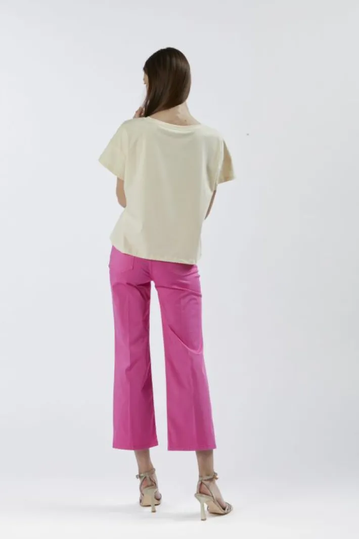 T-shirt a scatolina con maniche corte realizzata in jersey di cotone elasticizzato. la t-shirt riproduce un volto di donna circondato da fiori.