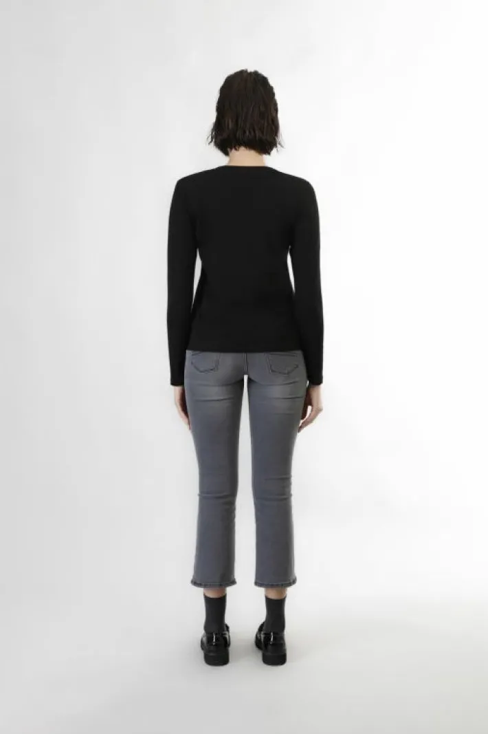 T-shirt a manica corta lunga in cotone elasticizzato con stampa e ricamo riproducono il nostro slogan “be noir”.