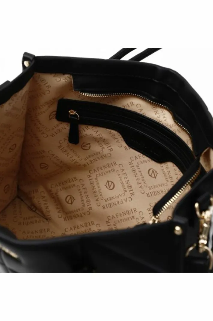 Tote bag con lavorazione a rilievo con effetto trapunta a motivo geometrico. manici tubolari e dettagli dorati. chiusura con cerniera. borsa dotata di tracolla.