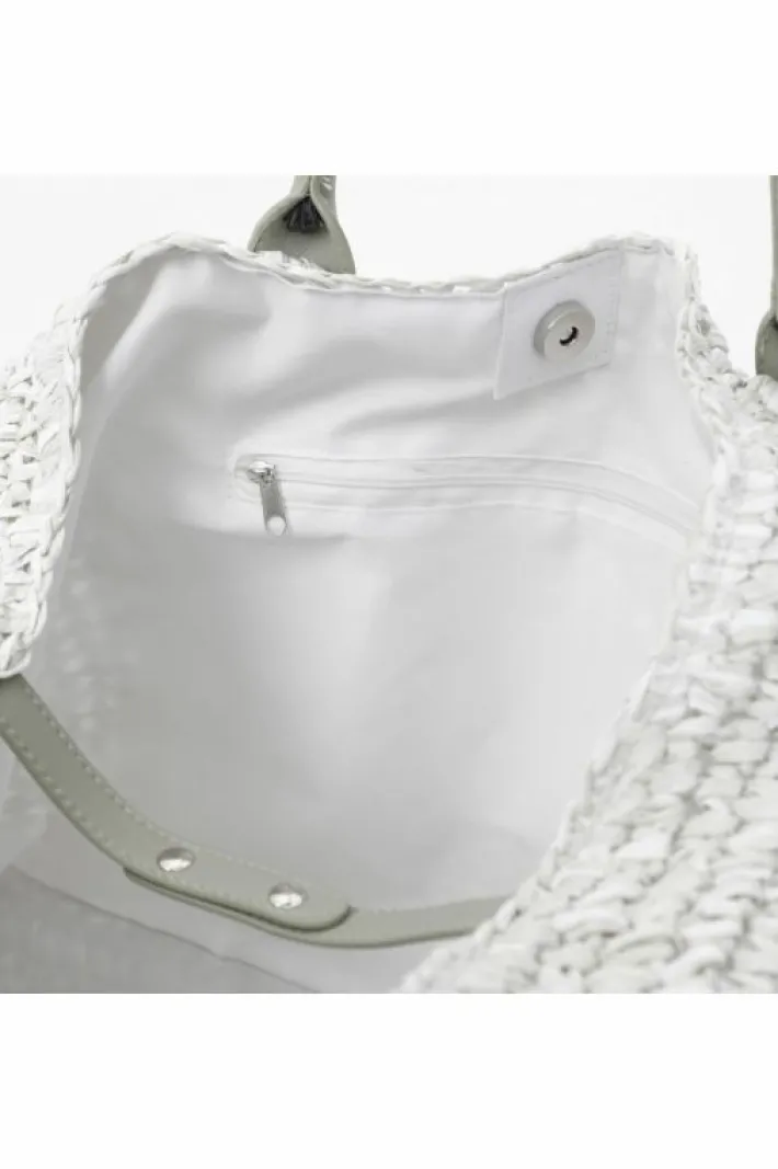 Tote bag in crochet di carta bicolore super capiente con doppia portabilità (laccetto interno).
