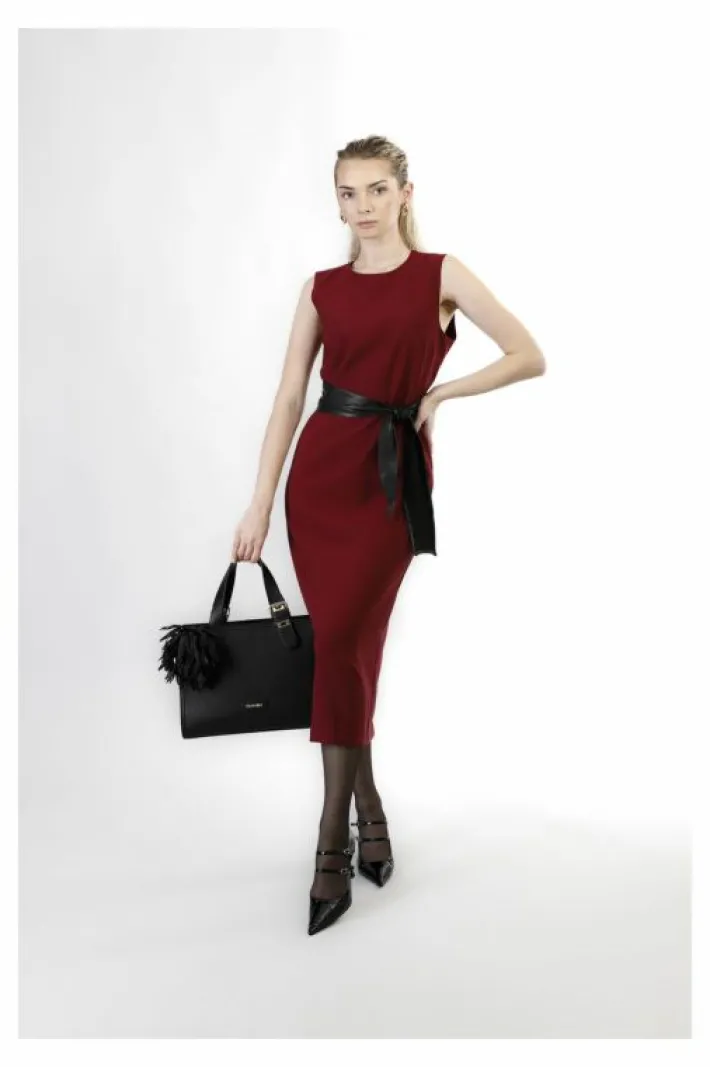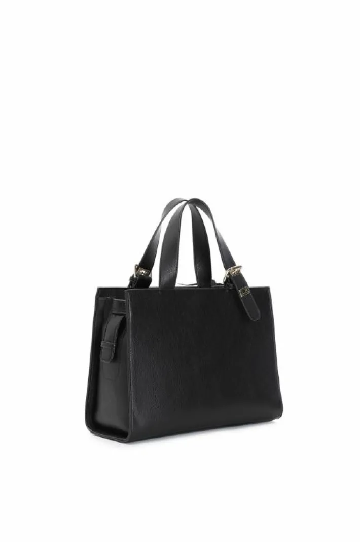 Tote con charm grande fiore in tessuto manici con fibbia regolabile.