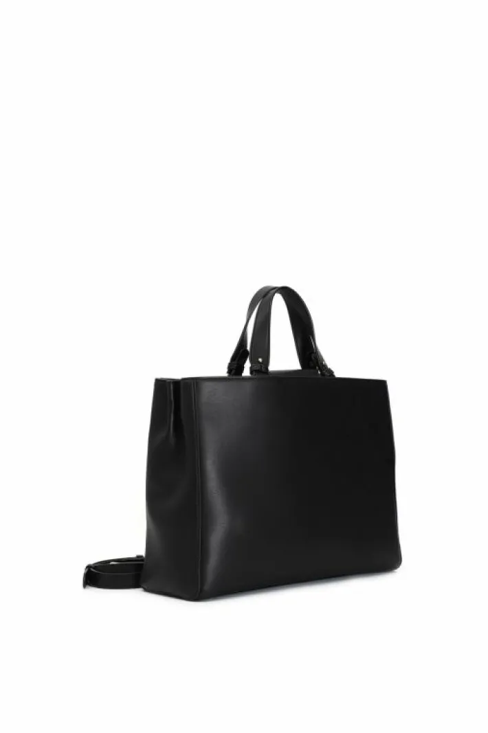 Tote morbida con infilatura e manici. accessorio lucchetto con logo. chiusura magnetica automatica. doppio scomparto. borsa dotata di tracolla.
