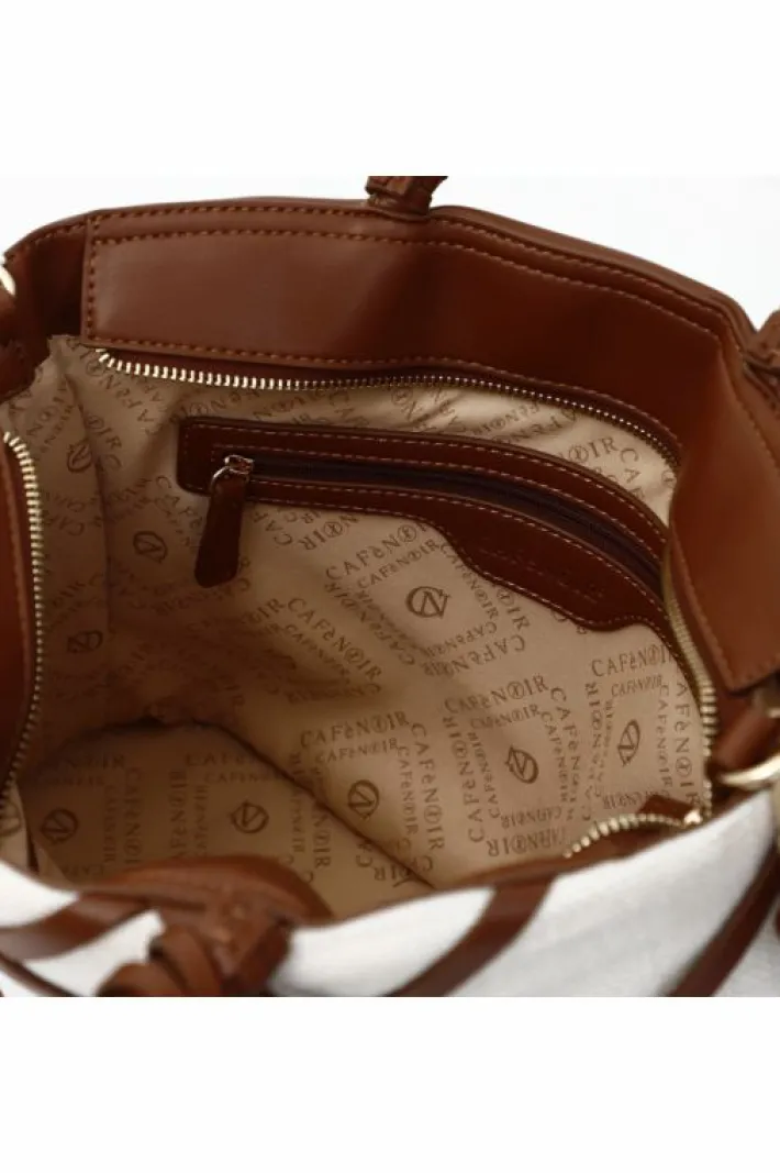 Tote in tessuto con intreccio effetto rete e applicazioni di borchiette dorate. charm con logo effetto cuoio. chiusura con cerniera. borsa dotata di tracolla.
