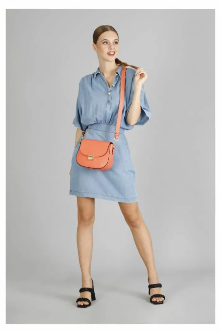 Piccola pattina in doppio materiale: crosta e pelle in tono con chiusura con strass.