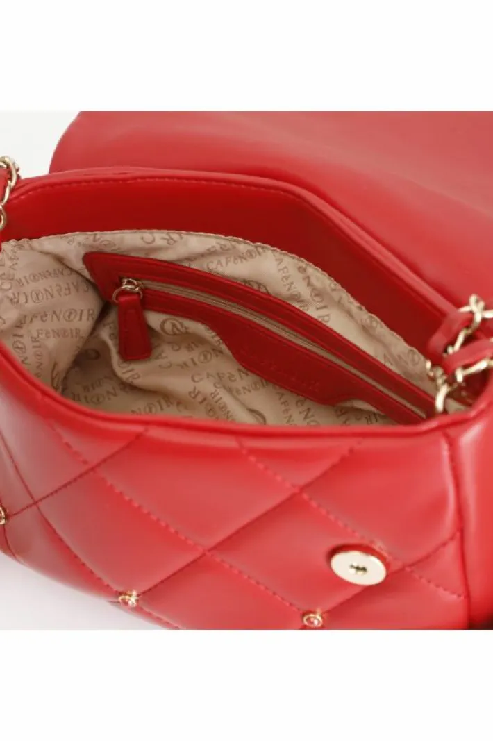Tracolla con trapunta a rombi con applicazione di rivetti in tono e logo cafènoir bicolore. tracollina regolabile con catena. chiusura con calamita.