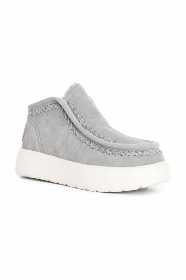 Tronchetto da donna con suola rialzata e con impunture. tomaia in pelle scamosciata e fodera in pelliccia sintetica.