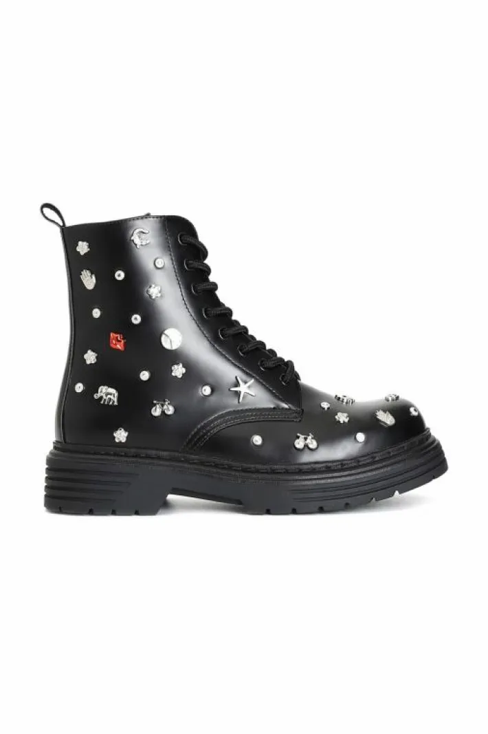 Tronchetto da donna allacciato decorato con multi borchie fantasia. calzatura perfetta per arricchire il tuo outfit.