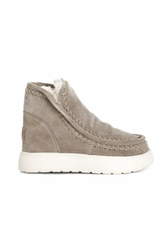 Tronchetto da donna con suola rialzata. tomaia in pelle scamosciata e fodera in pelliccia sintetica.