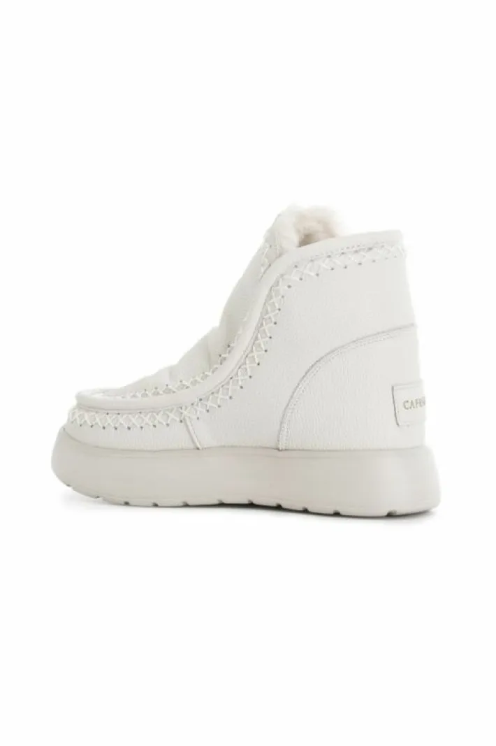 Tronchetto da donna con suola rialzata. tomaia in pelle e fodera in pelliccia sintetica.